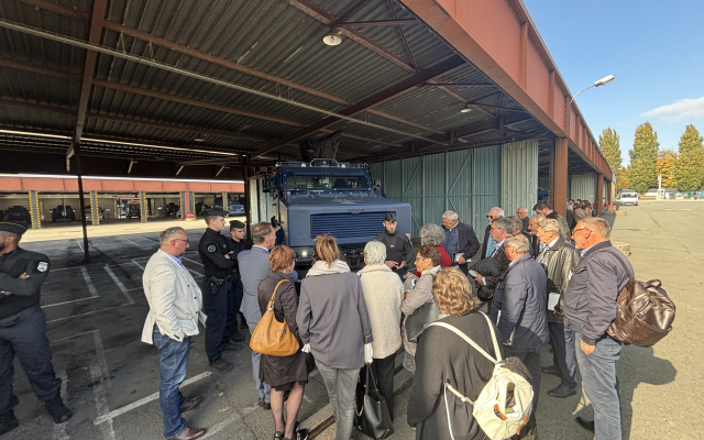 Pour terminer cette journée et la rendre inoubliable, les adhérents et les partenaires ont eu droit à des démonstrations statique et mobile des moyens du GBGM : visite des véhicules et simulation d’une intervention de maintien de l’ordre.