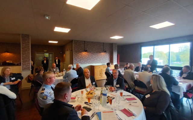 Au cours du déjeuner, comme à son habitude, notre Vice-président Franck Fontaine a présenté nos nouveaux partenaires : EVMA (Entreprise de Vidange, Maintenance et Assainissement), présidée par Steven Le Reste, qui réalise les diagnostics, les changements, les entretiens et les réparations de vos installations, et Prévisse, représentée par son dirigeant Goulven Baslé. Cette société est spécialisée en sécurité incendie et en prévention des risques professionnels. Elle accompagne les collectivités dans la mise en conformité et l’optimisation de leurs dispositifs de sécurité. Par exemple, elle réalise des audits de sécurité, l’installation et la maintenance des équipements de sécurité incendie, ainsi que des formations sur l’évacuation et l’utilisation des moyens de lutte contre l’incendie.